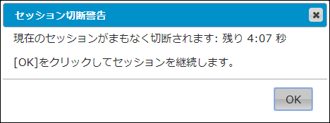 カウントダウンの時間内に「OK」ボタンをクリックするとセッションが継続されます。