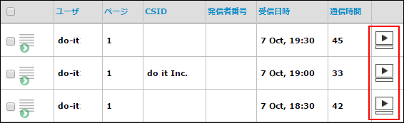 受信履歴が複数ページに渡る場合は、[ (次へ)]、[ (戻る)]や[ (最初)]、[ (最後)]をクリックすることでページを移動できます。