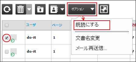 受信履歴左のボックスにチェックを入れ、オプションアイコンから「既読にする」または「未読にする」を選択すると、該当履歴行の背景色がそれぞれ「既読: グレー」、「未読: 白」となります。