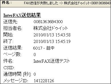 (FAXの送信が失敗した場合の通知メール例)