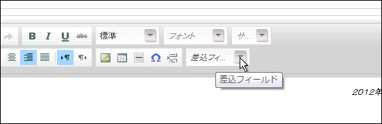 データ差し込む位置にカーソルを置き、「差込フィールド」のプルダウンをクリックして差し込む項目を選択します。
