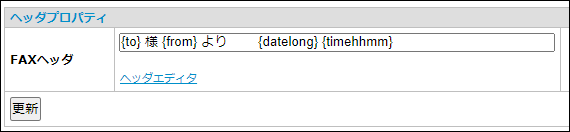 「FAXヘッダ:」のボックス部分に直接入力できます。 入力後[更新]をクリックします。