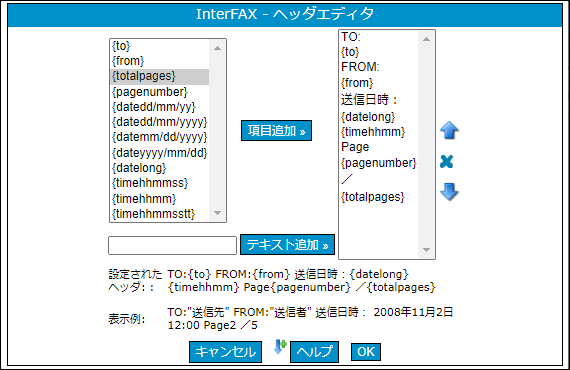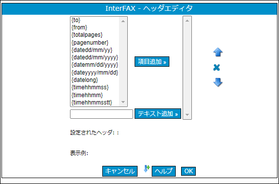 「表示例:」に実際のヘッダに印字される例が表示されます。