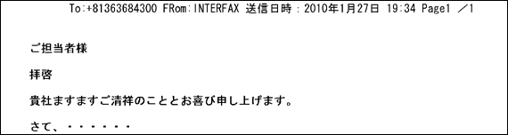 {from} 送信元(送り主)のCSIDが印字されます。 *注意事項 2) INTERFAX INTERFAX