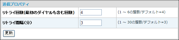 例えば、「リトライ回数」を「1」に設定しますと、1回目の送信で何らかのエラー(ビジー等)となった場合はその時点で「送信失敗」となり、リトライはおこないません。