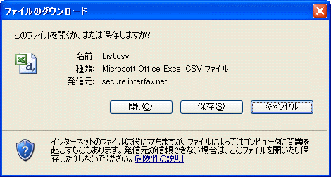 「ファイルのダウンロード」ダイアログで「保存」ボタンをクリックします。