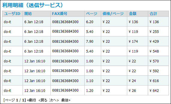 | PagesSent | 送信枚数。単位は「枚」です。 |