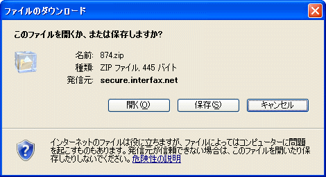 [保存]をクリックして任意の名称・場所に保存してください。但し、ZIP形式の圧縮ファイルがダウンロードされますので、解凍してご使用ください。